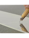 Удобный японский макетный нож Olfa AK-5 для деликатных работ по резке кожи и прочих, связанных с творчеством материалов, где требуется тонкая работа. Обратный конец сделан в форма шпателя для нанесения или выравнивания клея и других материалов. Цанговый зажим позволяет удобно держать нож в руке и быстро менять лезвие в случае необходимости. Также нож имеет сечение специальной формы, предотвращающее скатывание его со стола.