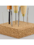 Пробковый блок удобно использовать при прокалывании кожи шилом или для хранения острых инструментов (шило, иглы и т.п.) просто воткнув их в нее. Но на этом круг его применения на самом деле не ограничен.