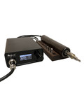 Термостанция RCI-01 предназначена для биговки кожи или обработки уреза при нанесении восков или краски. Станция самостоятельно контролирует температуру нагревательного элемента согласно выставленного пользователем значения (задается с точностью до 1°C). Наконечник нагревательного элемента имеет резьбу М5 для насадок. Это также позволяет использовать латунные клише с такой же резьбой.
