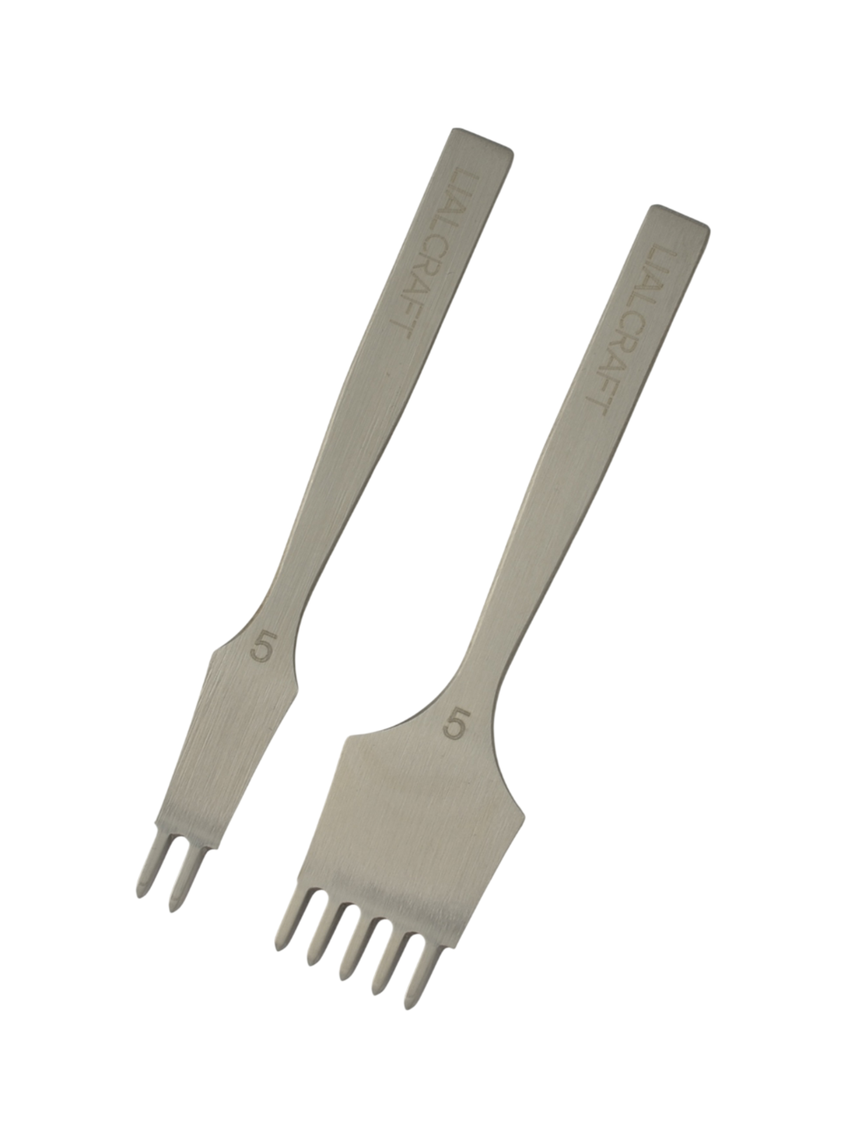 Набор строчных, ромбовидных пробойников LC из инструментальной стали с полированными зубьями. Используя данные пробойники вы сможете сшивать ваши изделия из кожи ровным и аккуратным швом. Отличие от версии LC 2+6 в том, что версия 2+5 имеет более толстые рукоятки.