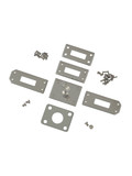 В ушко поворотного механизма, можно надеть небольшой замочек. Верхние части крепятся с помощью заклёпок, а нижняя часть с поворотным механизмом с помощью винтов. В комплекте идут все необходимые заклепки, винты и накладки для крепления.