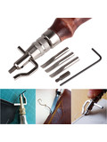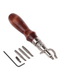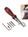 Универсальный инструмент кожевника 5 в 1 имеет: канавкорез (грувер), делающий паз в коже для того, чтобы шов был ниже уровня поверхности и меньше истирался. Смена режущего лезвия, на модельную ложку, превращает данный инструмент в разметчик (кризер). Регулировка расстояния, позволяет делать резы или разметку от 1 до 12 мм от края.