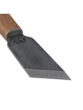 Ручка из дуба удобно лежит в руке и не скользит при работе. Нож имеет прямую заточку (подвод): 20-22 градуса и спуск 10 градусов. Заточка лезвия выполнена под правую руку.