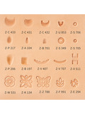 Набор литых штампов для тиснения по коже для начинающих. Охватывает весь базовый набор штампов для тиснения в стиле "Шеридан", а также фоновые штампы, бордюр и орнаменты.