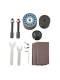 Комплектность: станок, насадка для наждачной бумаги, насадка-сликер, переходник под диски и круги, ключи для установки, наждачная бумага под насадку (6 шт), запасные щётки для двигателя.