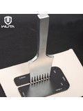 Специальная линейка от Wuta для работы с пробойниками и кожей. Позволяет прижимать кожу при вытаскивании пробойника, размечать шаг пробойников при создании выкройки, а также обрезать скругления на углах с радиусами 5 мм или 10 мм.