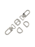 Набор фурнитуры Wuta Z101 для изготовления ремешка сумки. Данный комплект подходит в цвет к фурнитуре Wuta серии Z. В комплект входит два карабина, два полукольца и пряжка одинаковой ширины и цвета.