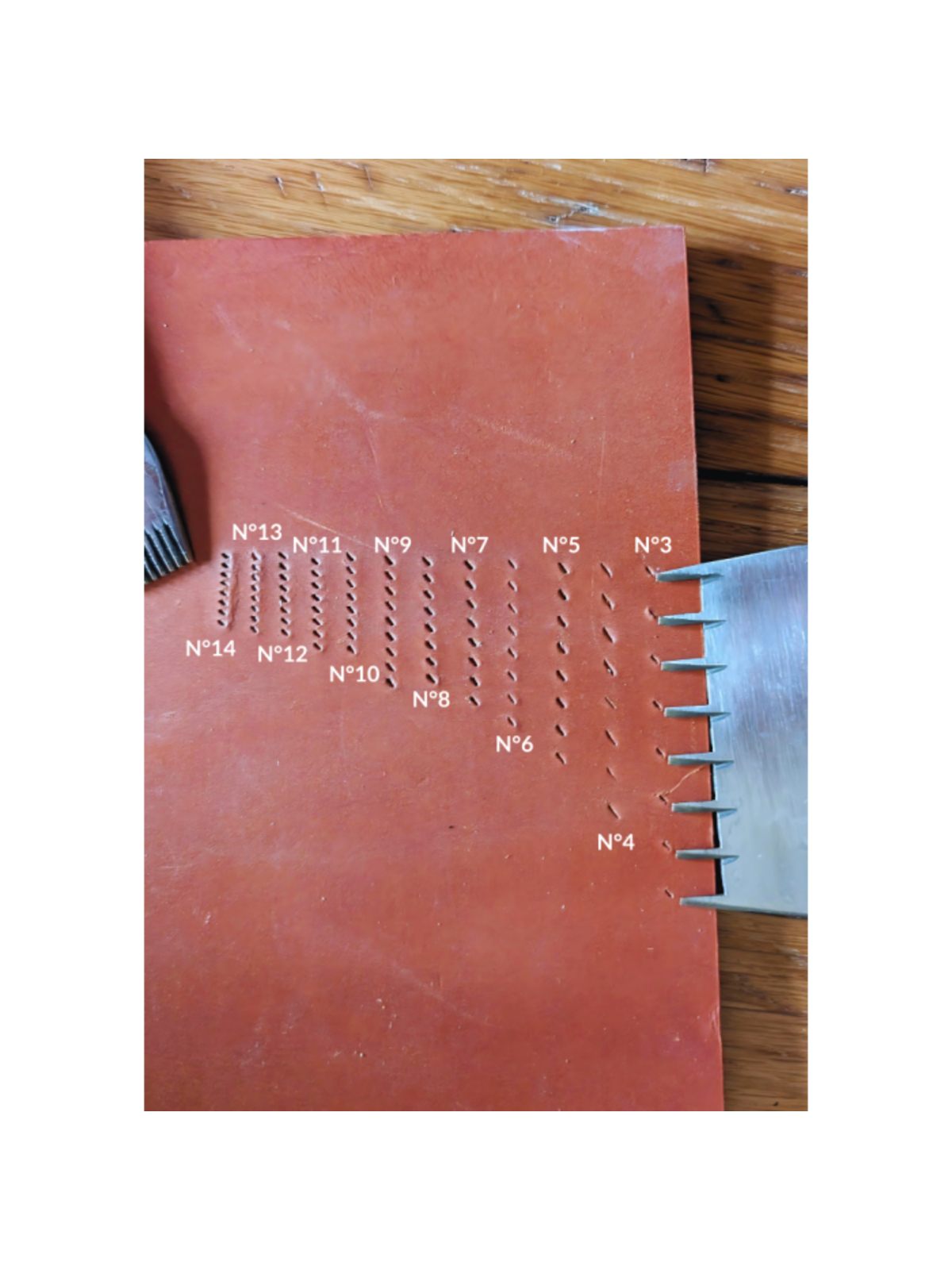 Обратите внимание это пробойники-разметчики, которые пробивают кожу до 2,5-3 мм, на более толстых кожах понадобиться докалывать любым ромбовидным или французским шилом. Горизонтальные грани идут полированные.