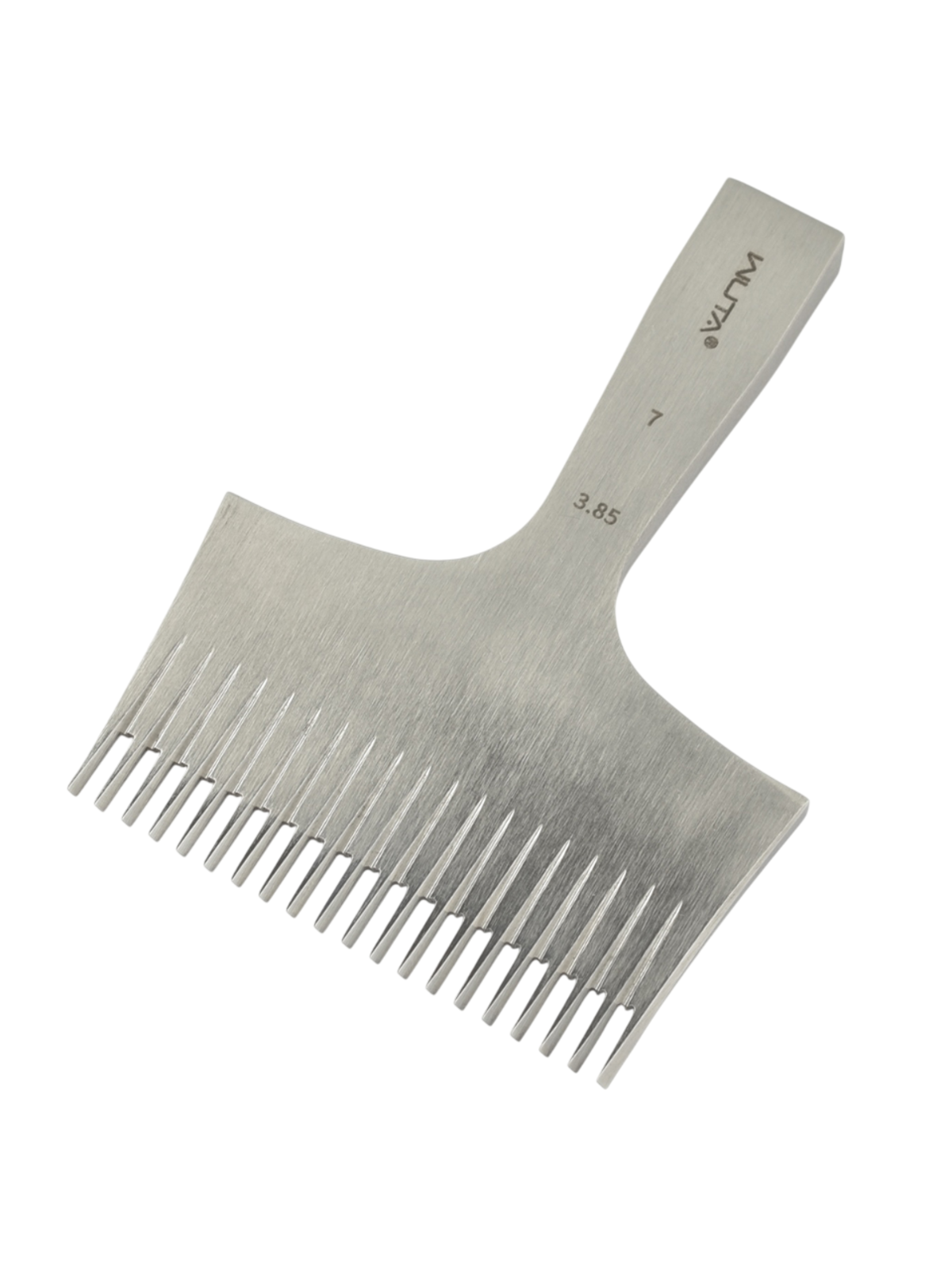 Прямой, французский пробойник для кожи от Wuta из инструментальной стали, с полированными зубьями. Такие пробойники бывают двух видов: прямые (лицевая сторона) и обратные (изнаночная сторона).